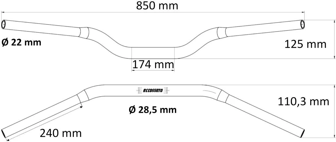 Accossato Handlebar is a Made in Italy product, 100% checked before being placed on the market. Aftermarket handlebar is an adaptable product and therefore compatible for different motorcycle applications for street or offroad. For offroad use, we suggest to combine it with bar, with or without spongy buffer. Handlebar is suitable in black, red, silver.
