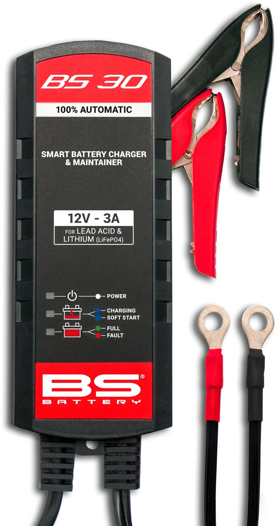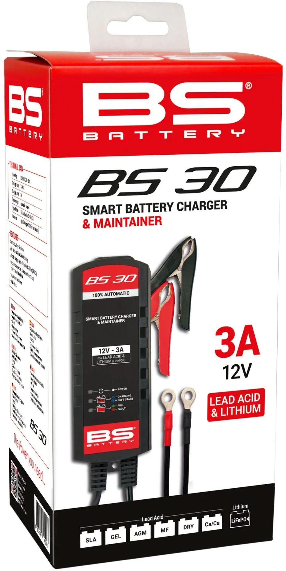 The brand-new BS 30 is a 12V smart battery charger and maintainer rated at 3A. Designed for lead acid and lithium batteries, this powerful automatic charger is suitable for batteries up to 60Ah.