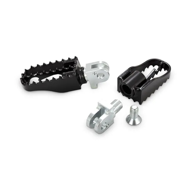 Burly Brand Steel MX Style Pegs offer an adjustable clevis with built-in teeth that will bite down and clock them to your liking.