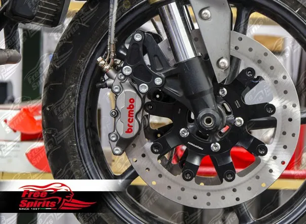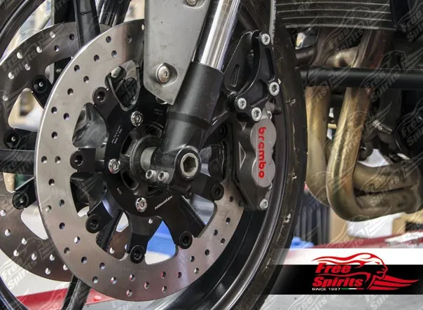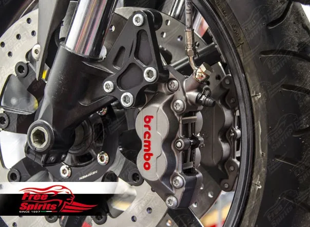 ×Complete kit with 4 pistons Brembo calipers (Titanium) and cnc machined mounting brackets black anodized.