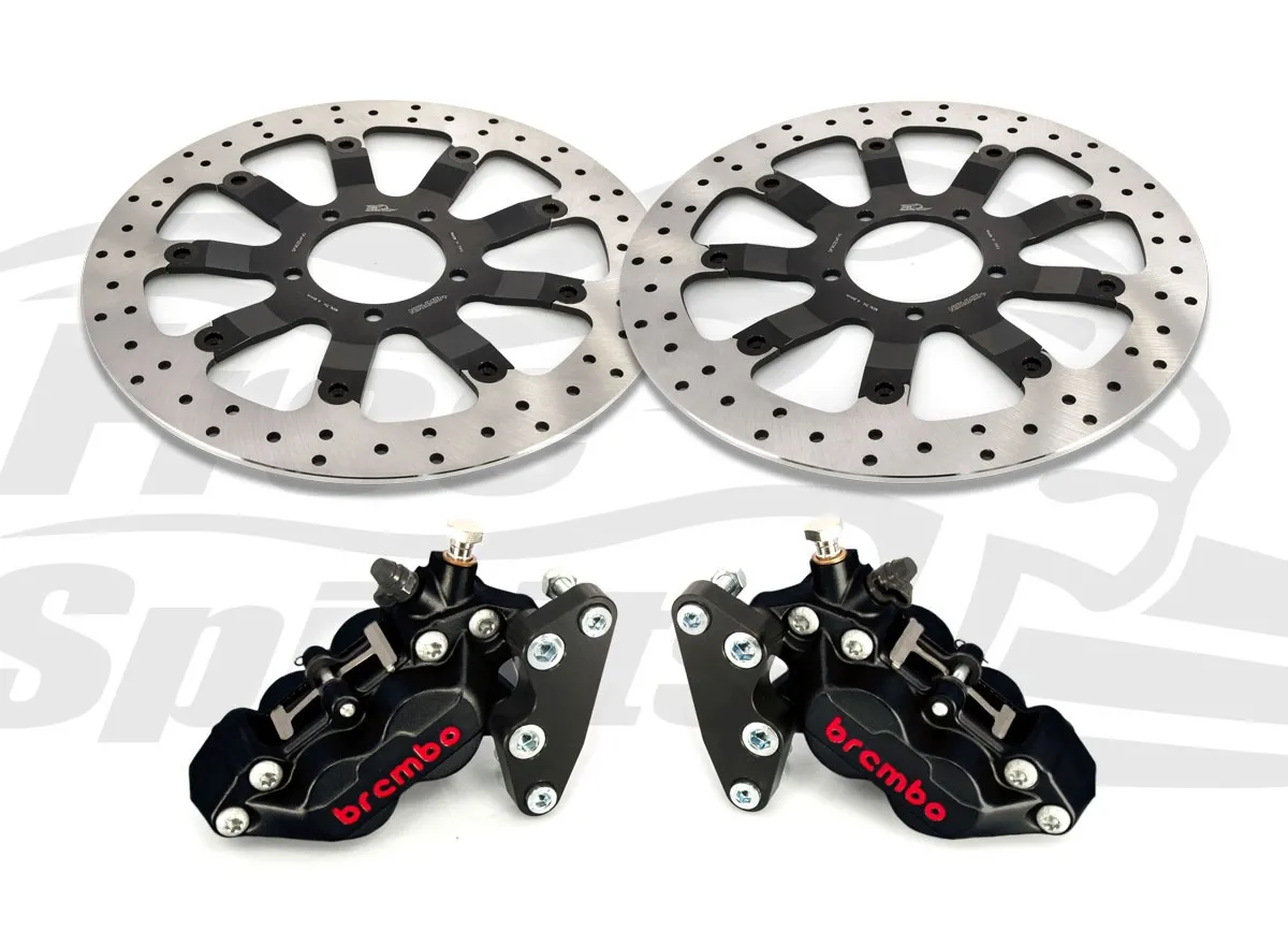 ×Complete Bolt-in kit with 4 pistons Black Calipers & cnc machined Mounting Brackets black anodized.
