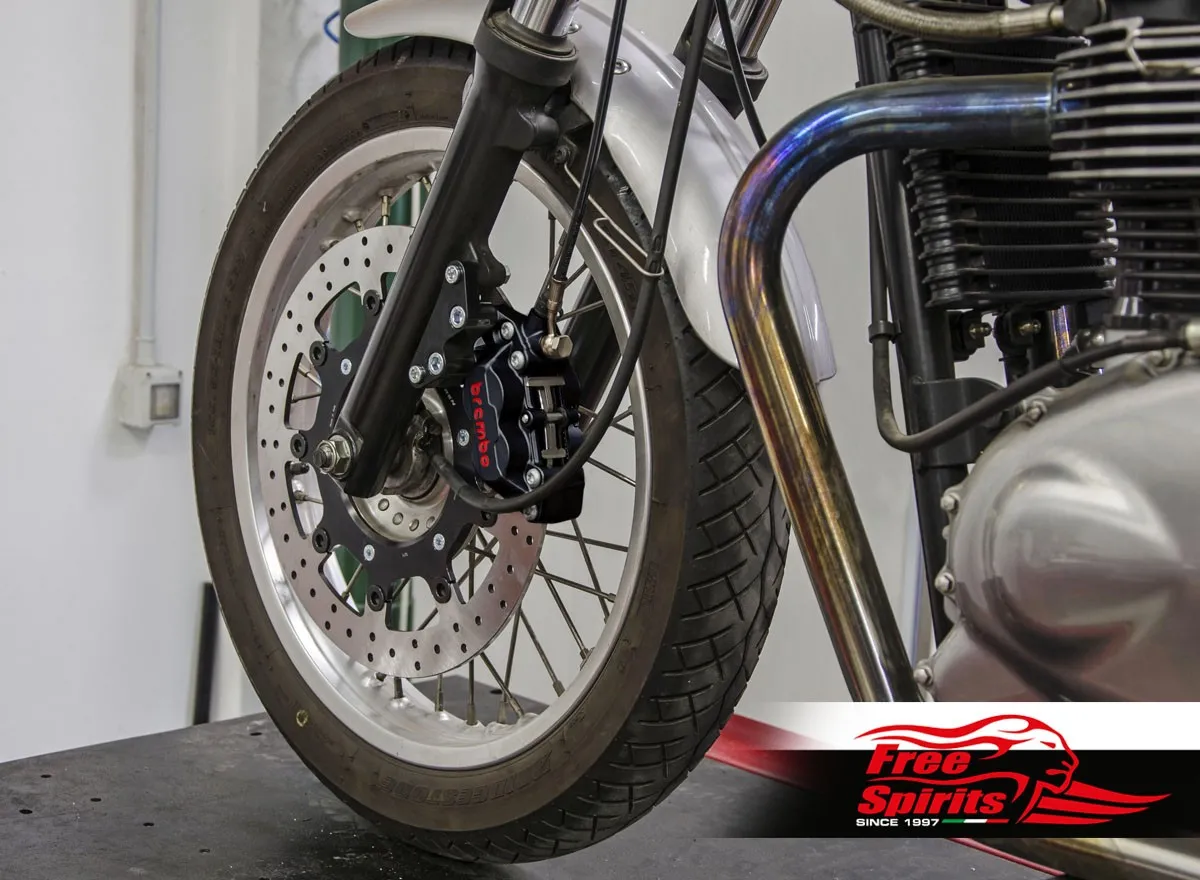 Fully floating front brake rotor oversized (diameter 340 mm), with high-quality braking band fully tempered, alloy hub and buttons.