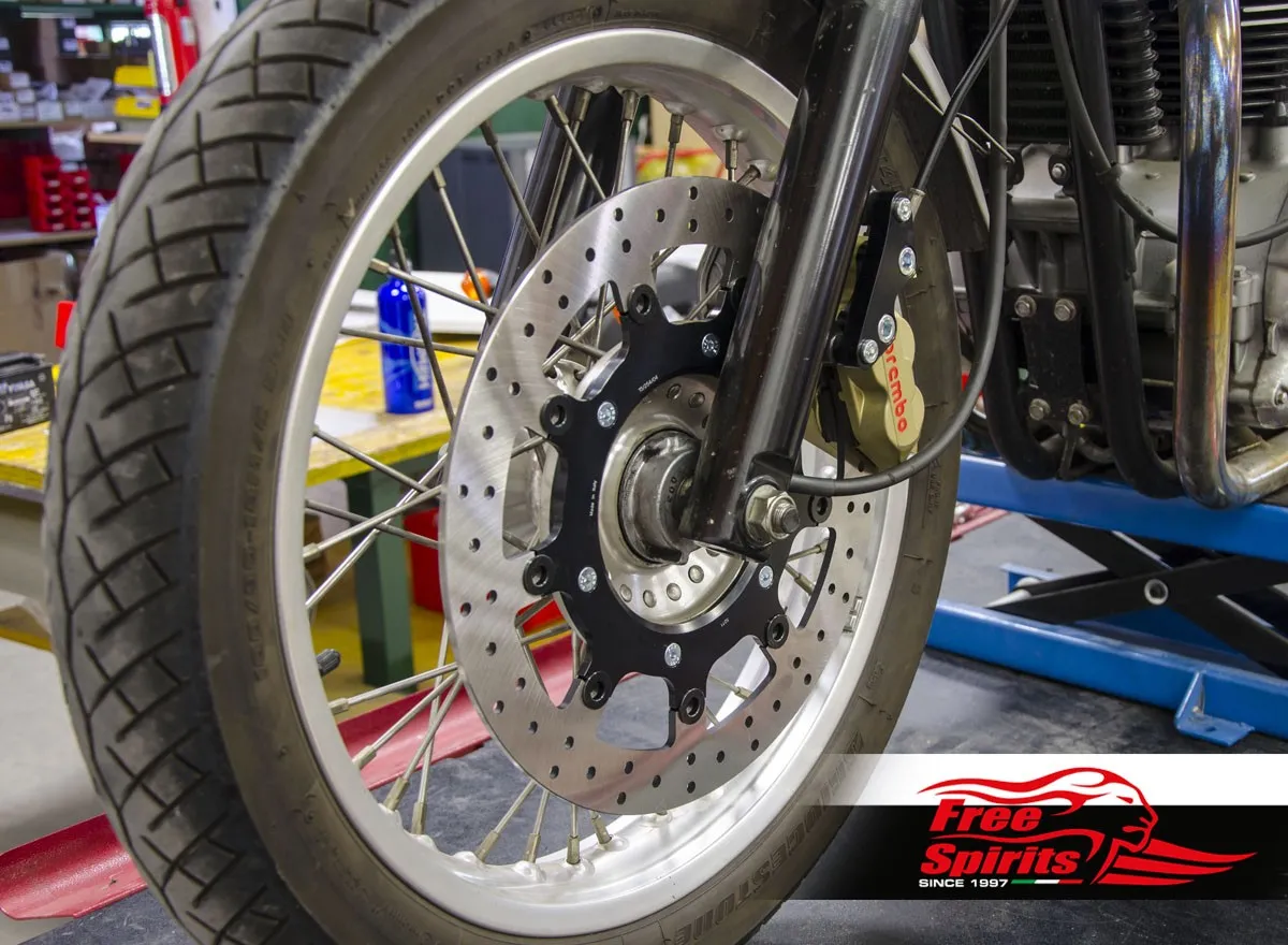 Fully floating front brake rotor oversized (diameter 340 mm), with high-quality braking band fully tempered, alloy hub and buttons.