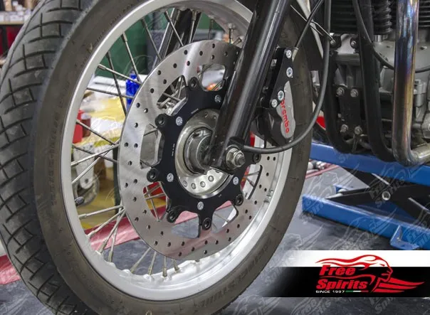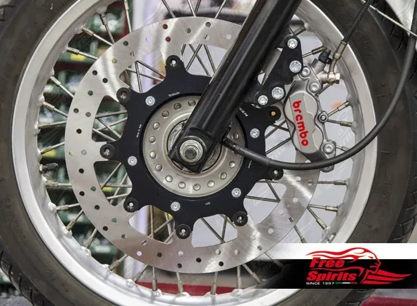 Fully floating front brake rotor oversized (diameter 340 mm), with high-quality braking band fully tempered, alloy hub and buttons.