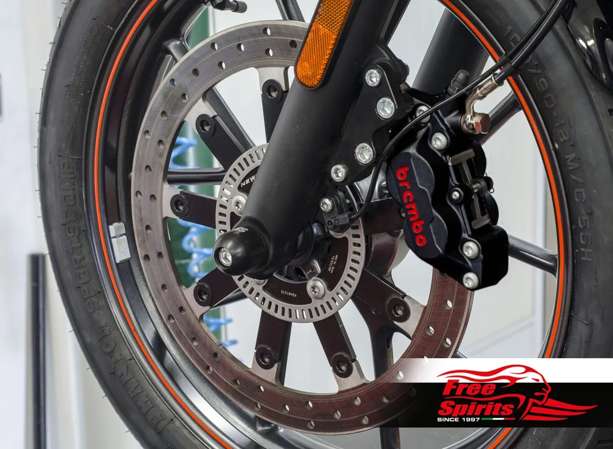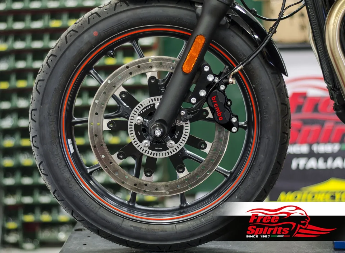 Fully floating front brake rotor oversized (diameter 340 mm), with high-quality braking band fully tempered, alloy hub and buttons.