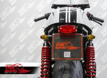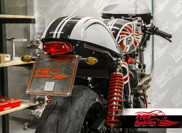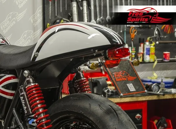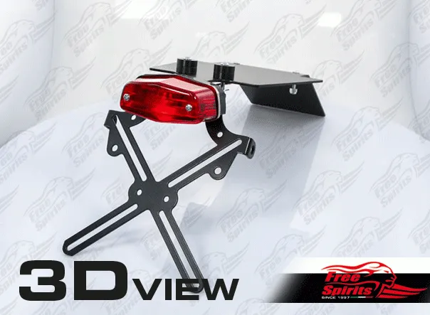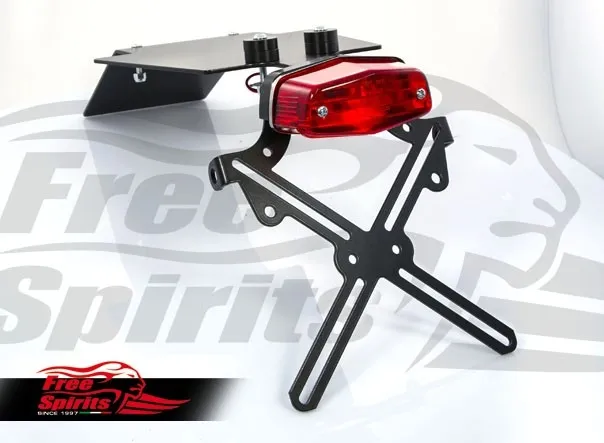 Kit includes tail light with EC approved lens and harness, black coated license support with indicator bracket built-in and all the necessary mounting hardware.