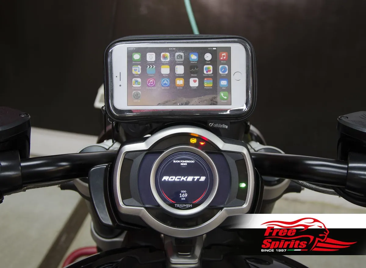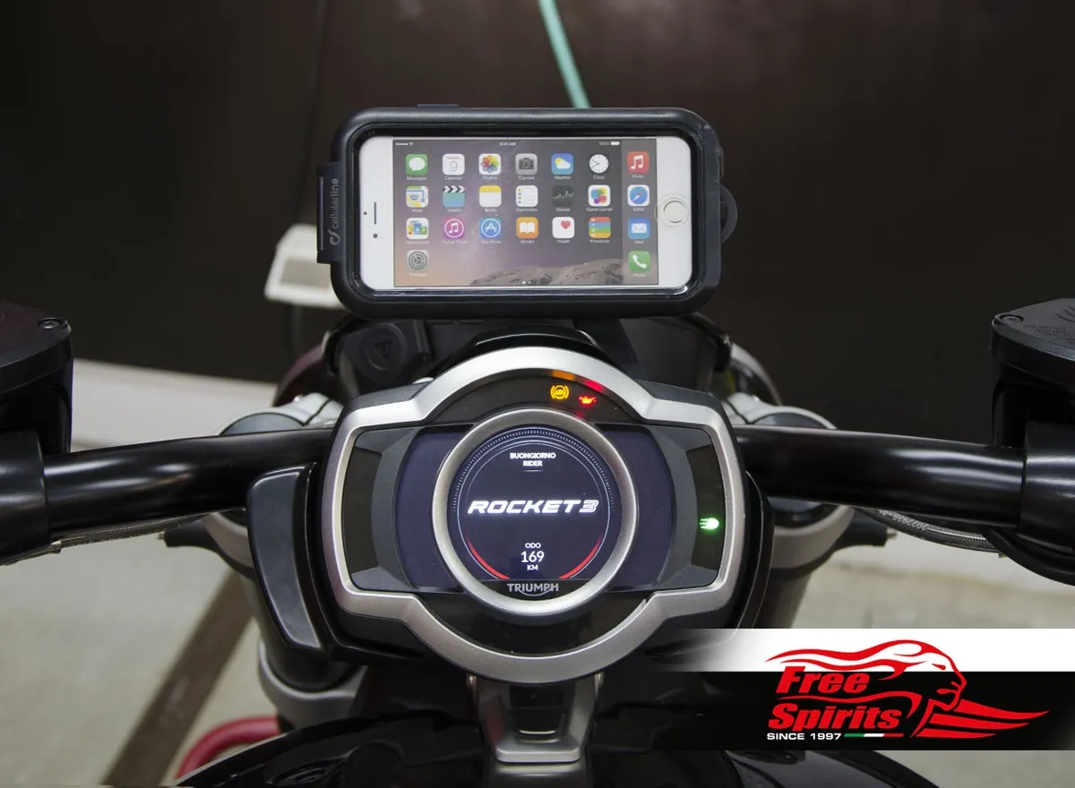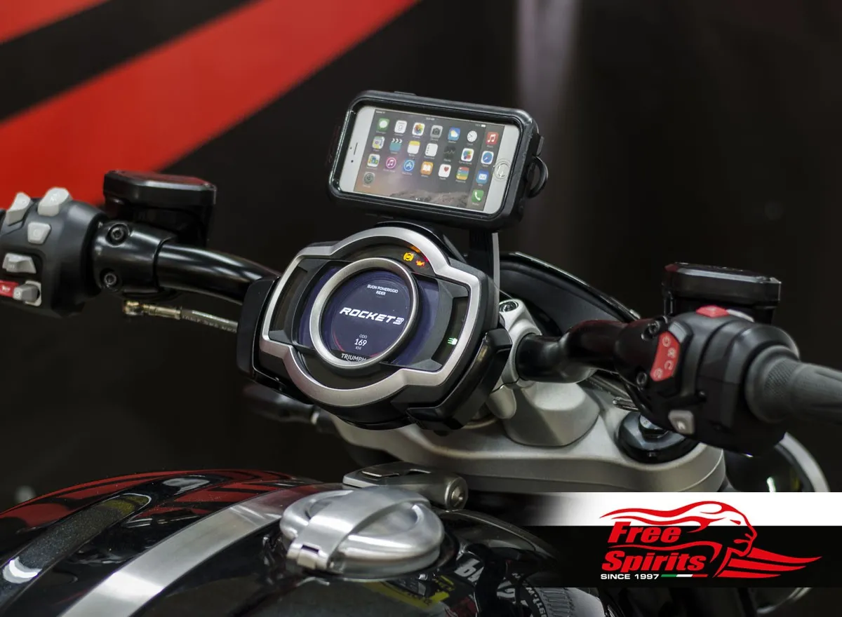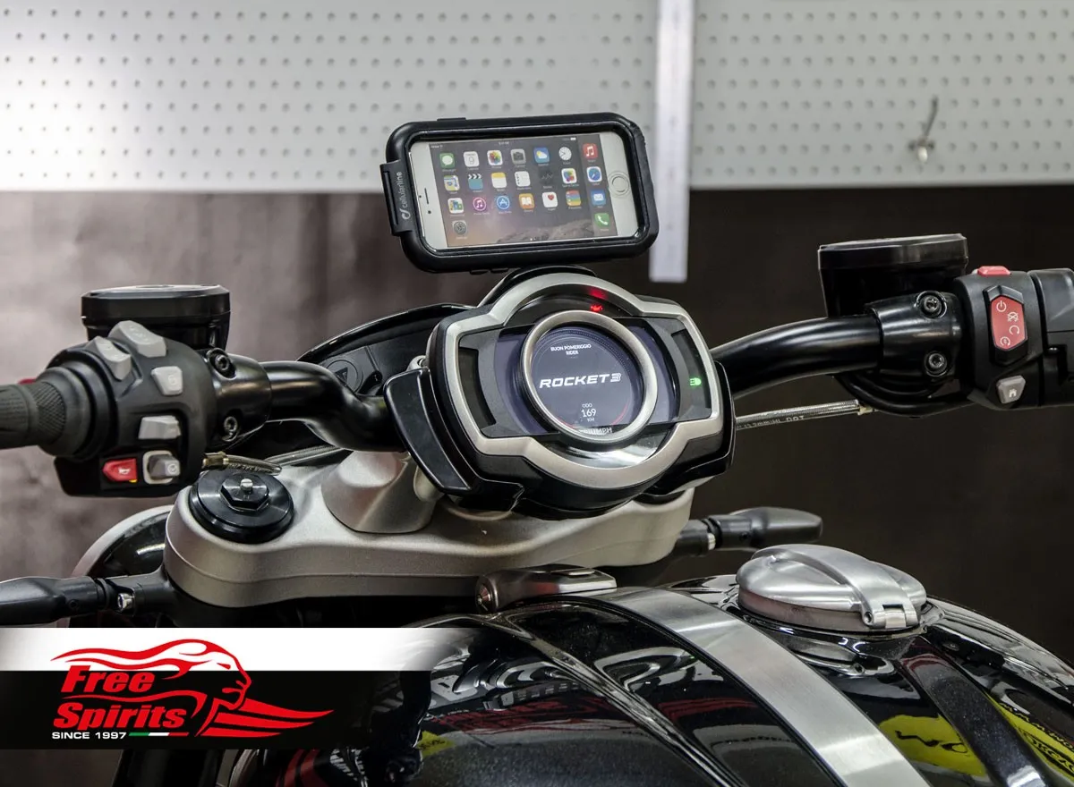 Unlike the universal brackets, Free Spirits kit precisely integrated into Rocket 3 architecture – Free Spirits designed the bracket bolted on the dashboard support of the motorcycle.