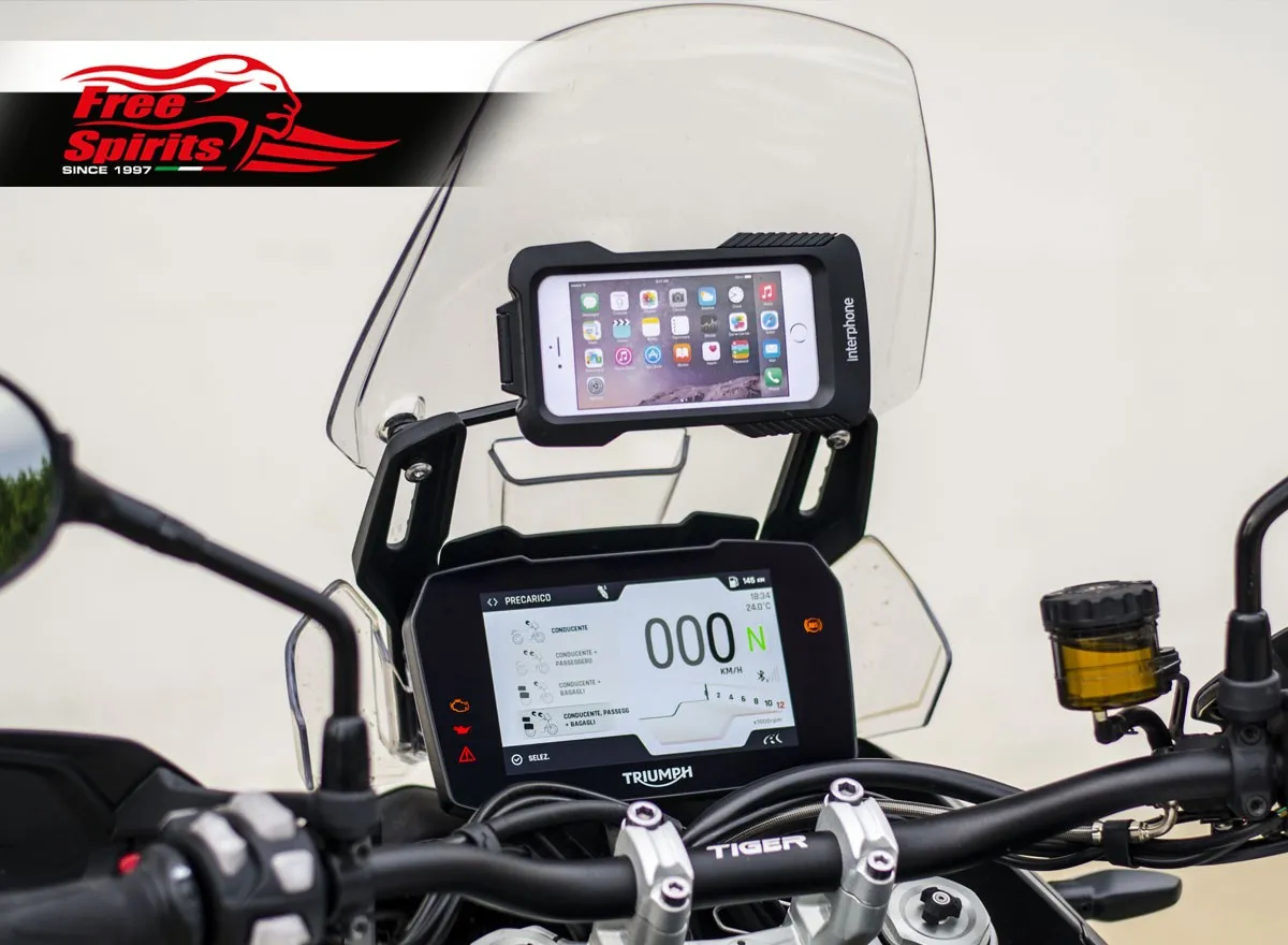 The instrument cluster remain visible and windshield moves freely even with big screen mobile devices fitted.