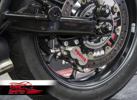 • 4 piston “Brembo” caliper Titanium with brake pads.