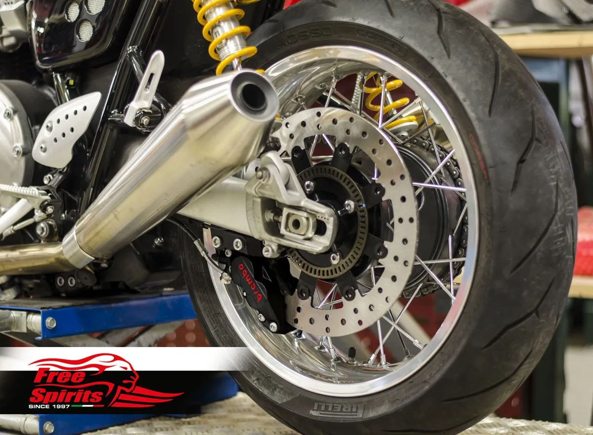 ×Rear floating disc & 4 pot caliper for Triumph Thruxton 1200 & Speed Twin.