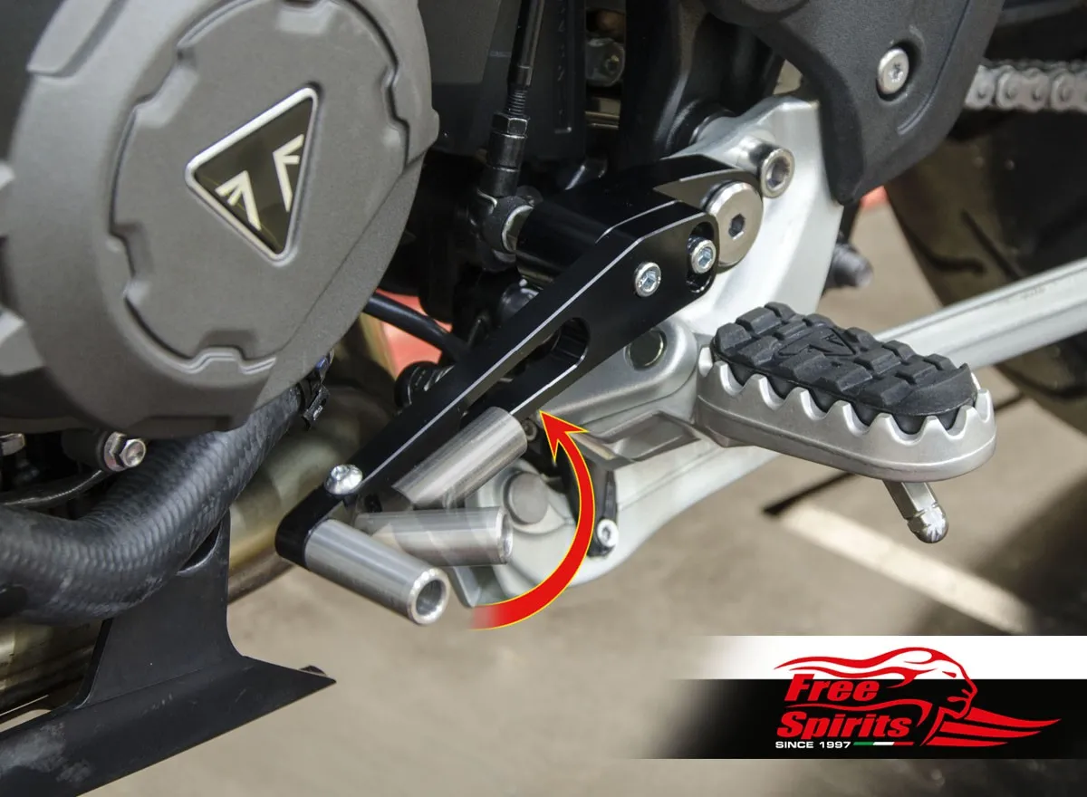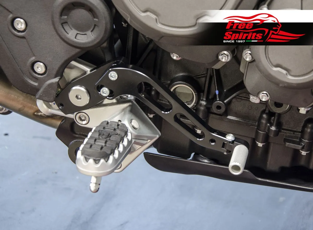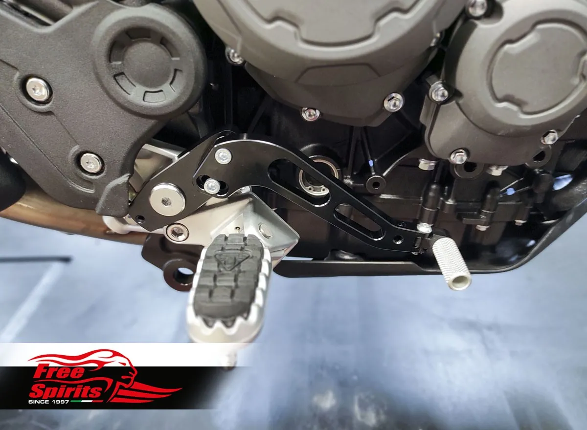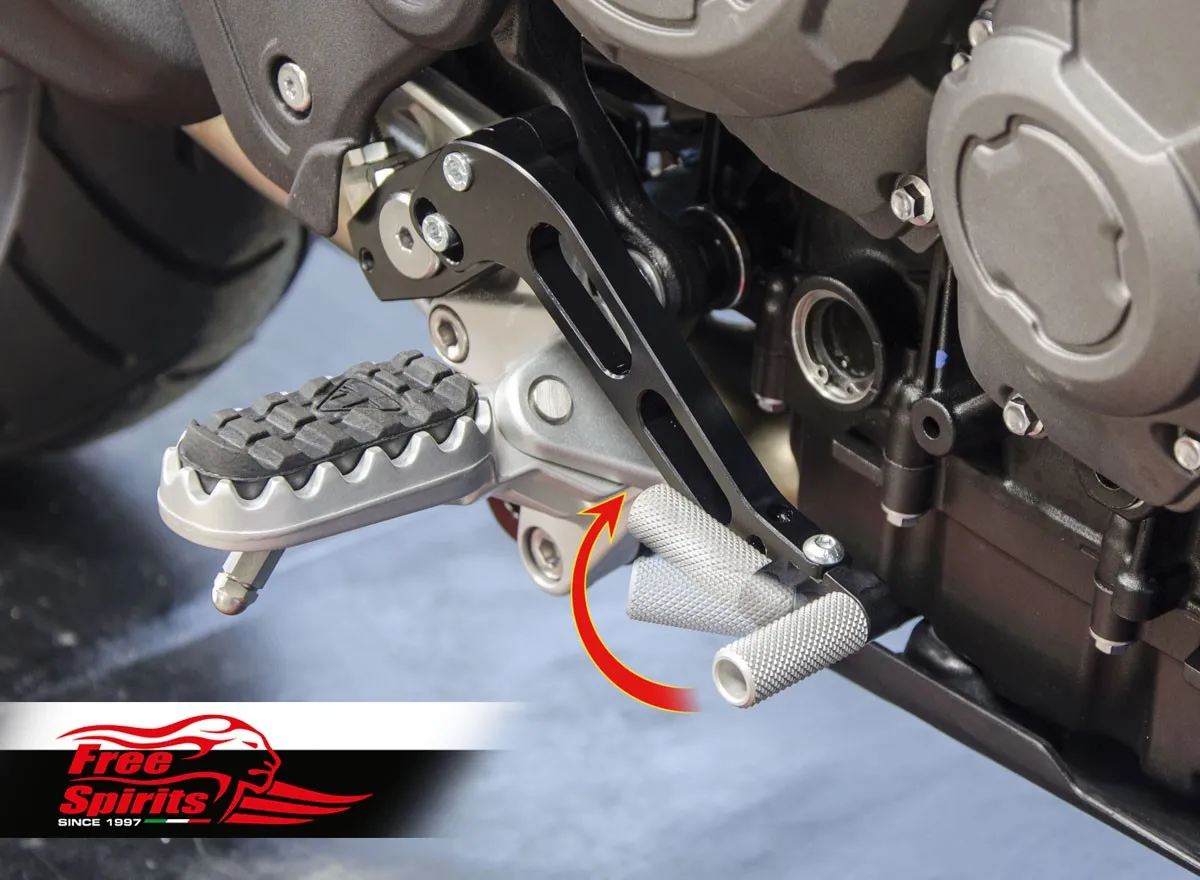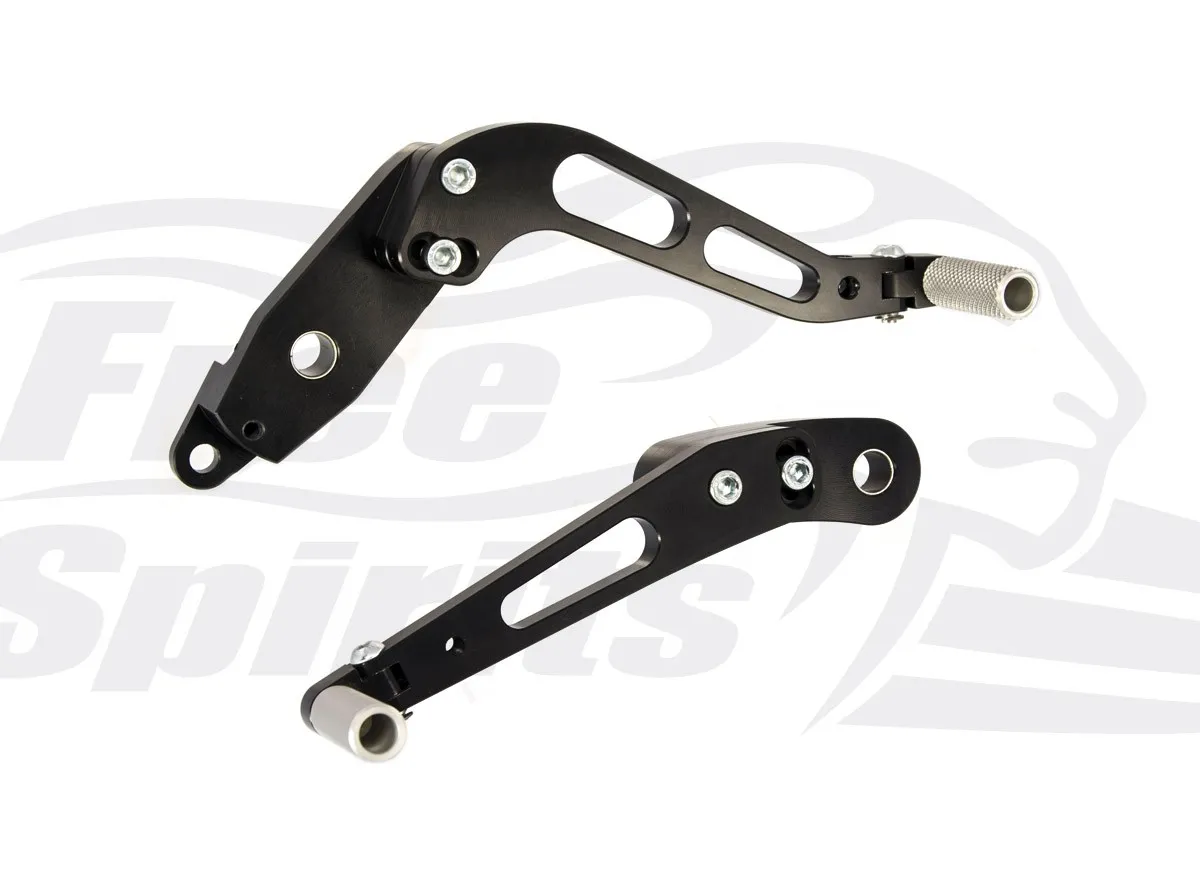 Bolt on kit, mounts directly on the foot rests and replaces completely the original levers. CNC machined from top quality billet aluminium, finished in black anodised.