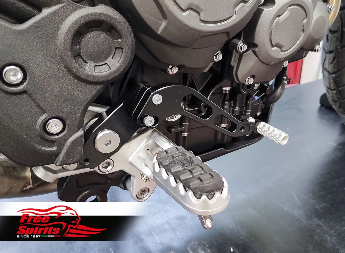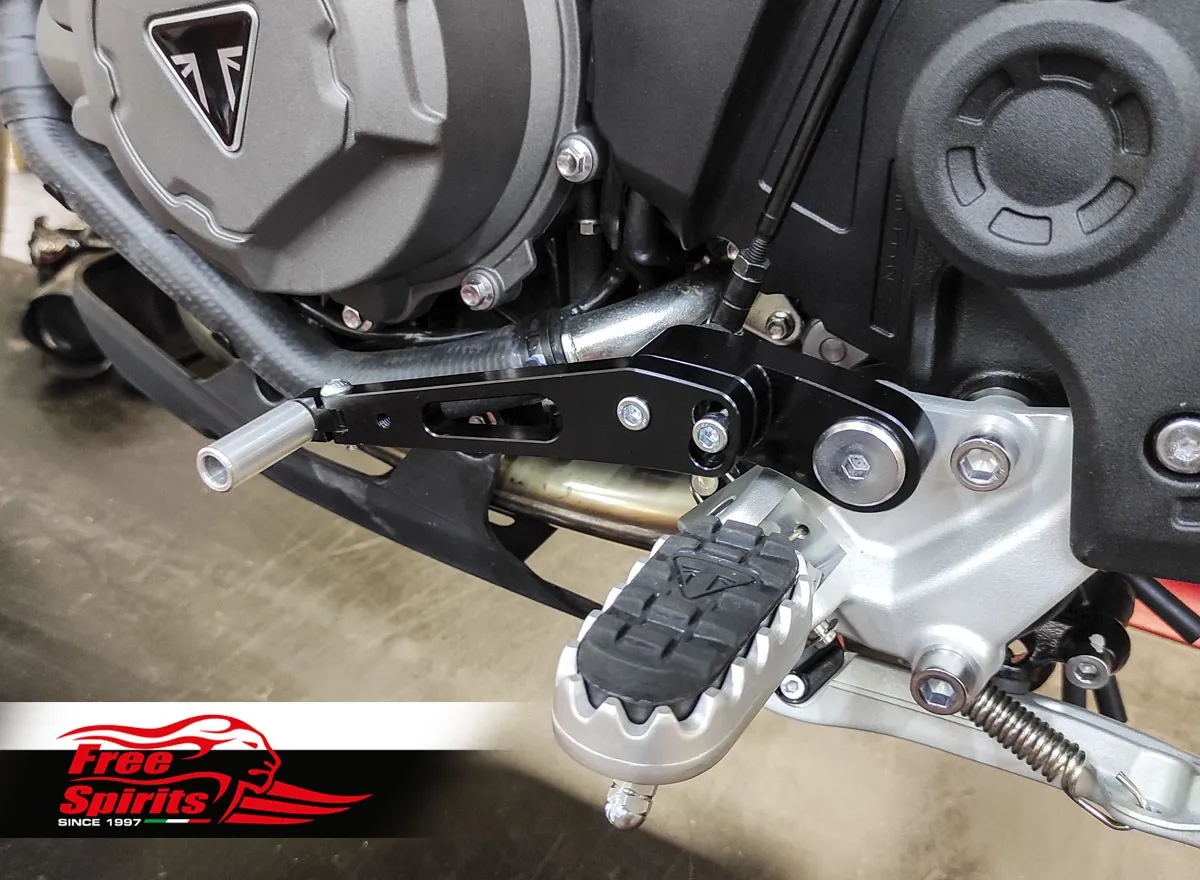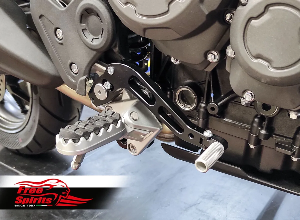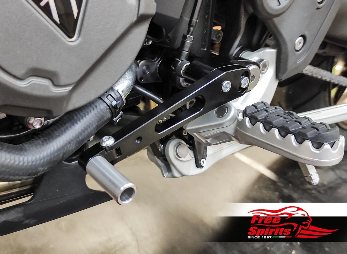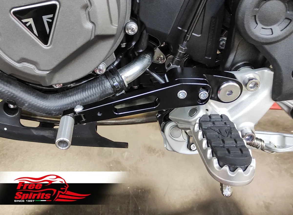 Bolt on kit, mounts directly on the foot rests and replaces completely the original levers. CNC machined from top quality billet aluminium, finished in black anodised.
