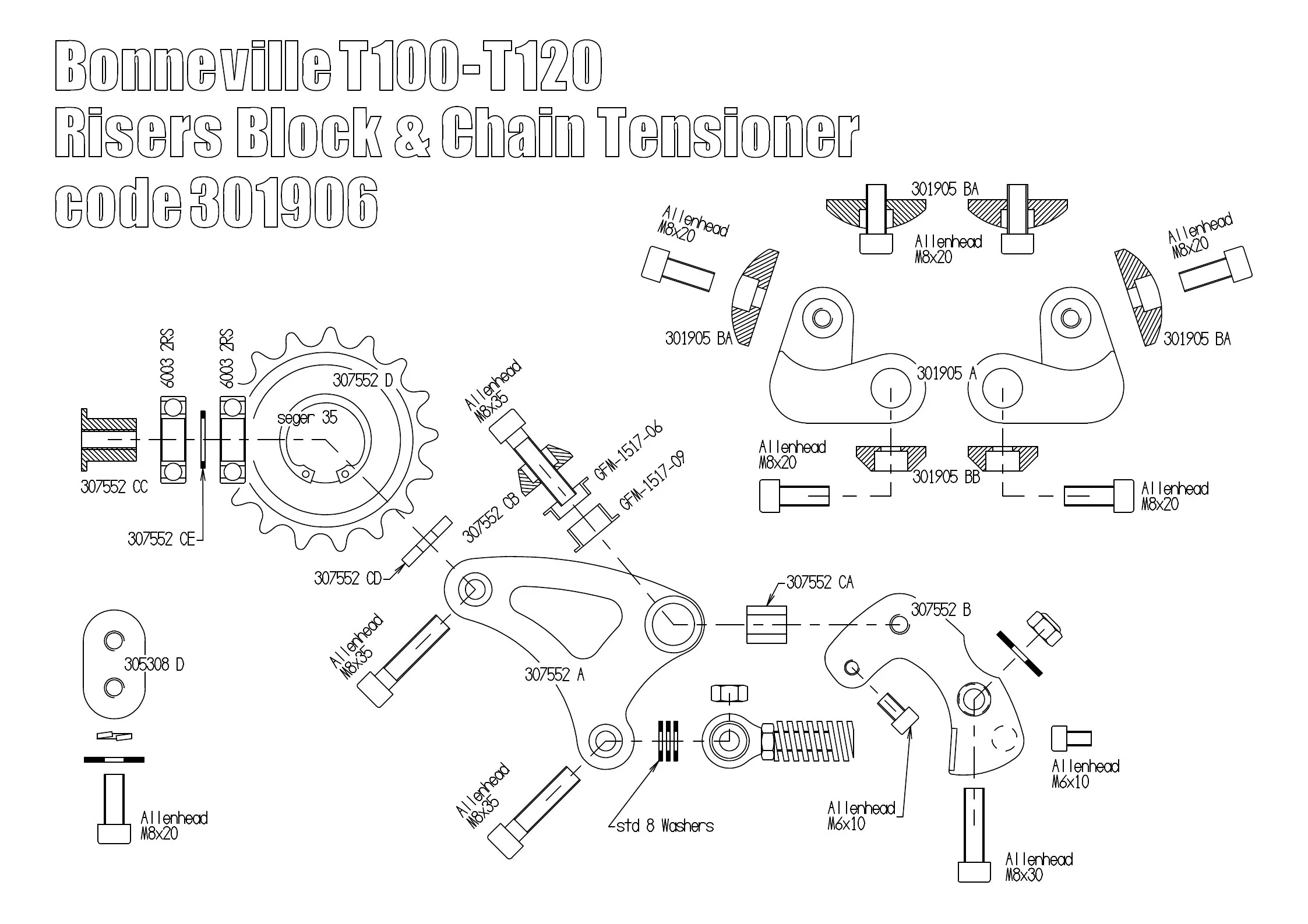 Our "risers block" kit are made of light alloy tempered, available anodized black & equipped with galvanized steel bolts.