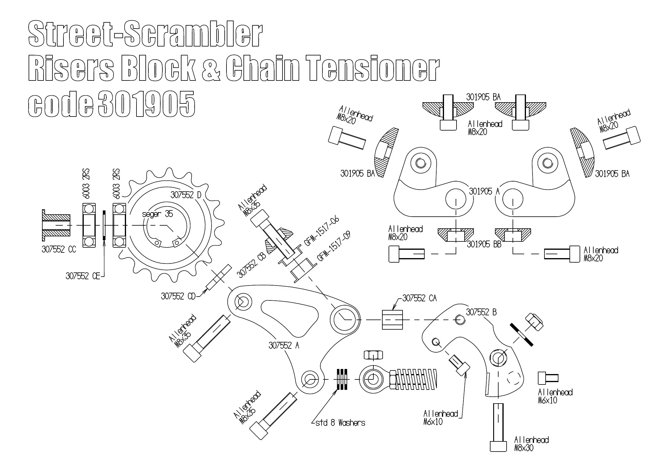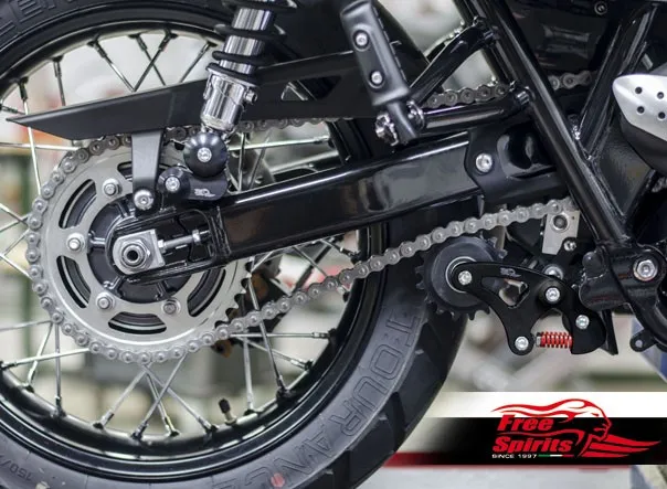 In addition the chain tensioner provided is designed to keep a constant but light tension on the drive chain throughout swing-arm movement, the reduced stress and shock loads not only benefit and prevent premature lengthen of the chain but also and above all reduce stress from wheel and gearbox output bearings.