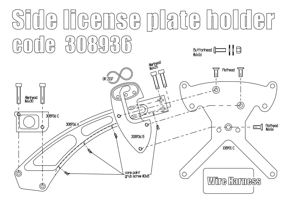 Kit includes: bracket, license plate holder and wiring for the original license plate light.