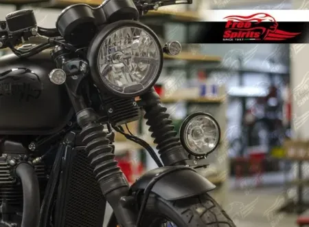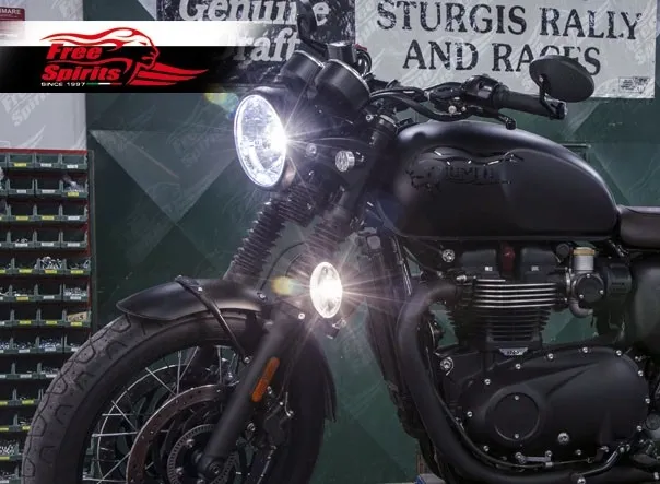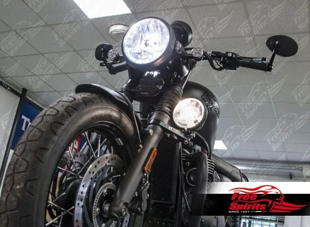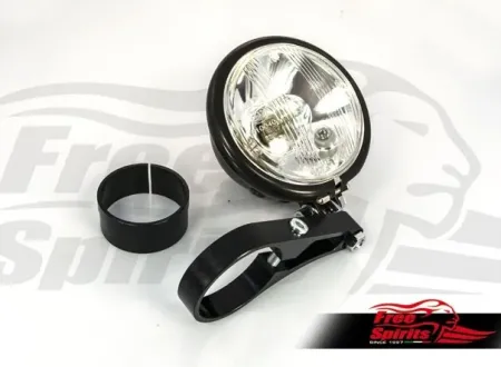 The kit includes: CNC aluminium alloy bracelet black anodized, Bates headlight 4 - 1/2 inch black painted and dedicated wiring.