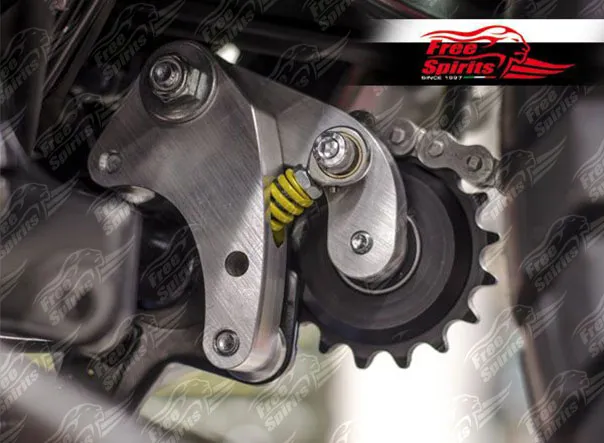 ×This New chain tensioner is designed to keep a constant but light tension on the drive chain throughout swing-arm movement, the reduced stress and shock loads not only benefit and prevent premature lengthen of the chain but also and above all reduce stress from wheel and gearbox output bearings. Maintenance free chain tensioner. Sprocket is lubricated by the chain so no need to lubricate separately.