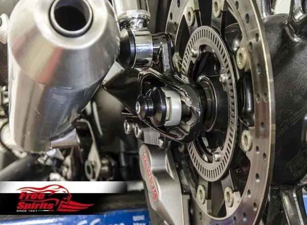 ×CNC machined aluminium paddock stand bobbins with galvanized steel mounting hardware.