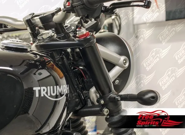 They are mounted between top plate and the turn signal indicators OEM, with included O-Ring for that massive muscle bike look!
