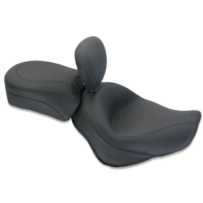 ×Mustang‘s driver seat is a full 15” wide and sits you at the ideal cruising angle. The passenger sits comfortably in a 11.5” wide bucket that utilizes Mustang’s unique internal steel support wings. Both the solo and rear seat are built on marine-grade fiberglass baseplates, complete with chrome mounting hardware. All styles feature braided edge trim. The built-in driver backrest offers more features than any other backrest on the market.