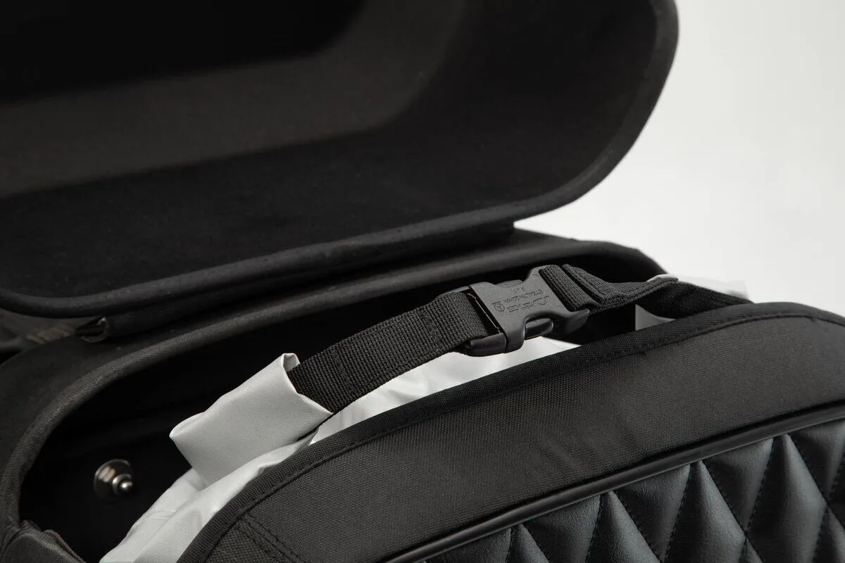 - The LH side bag combines the low weight of a saddlebag with the high form stability of a case.