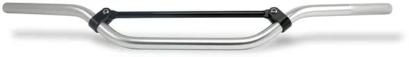 Aluminum handlebar with a silver-look anodized protective coating, ABE approved, Approx. dimensions: 797mm wide x 128mm high x 81mm pullback. Compatible with most applications that require a 22mm diameter handlebar. Bars come with a brace installed for utmost strength in extreme conditions. All are manufactured from high strength aluminum alloy tubing with a wall thickness of 5mm and include a weatherproof anodized finish for long lasting good looks. Note: Check your local MCS dealer or the MCS sales department for exact type of approval and validity on bike model and years on the test report.